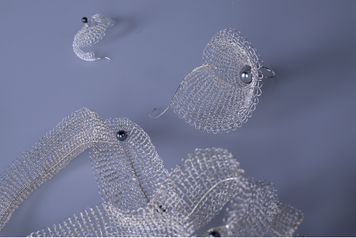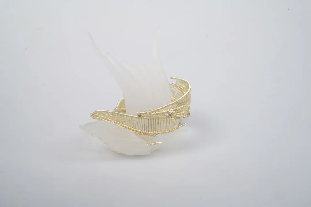 作品運用編織工藝展現金屬網造型,通過和展翅欲飛的翅膀的結合,運用首飾這種載體來探討親情之間的親密關系,呈現當下為人關注的親子問題,試圖引起觀者對親密關系的思考及共鳴。