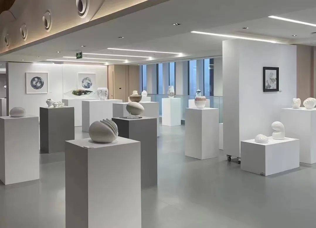 金屬材質則作為輔助,來襯托陶瓷材料的色彩與光澤,金屬絲表現了海洋生物在海底活動時的姿態,高低起伏、錯落有致的絲線把他們遨游時的自由歡快定格了下來。