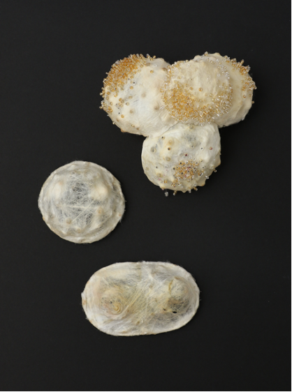蠶絲是生命體自身分泌的一種蛋白纖維,由蠶絲構成的蠶繭是包裹生命體完成蛻變的場所,蠶絲作為一種傳統的纖維材料充滿生命力與原始崇拜的神秘意象。