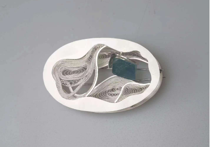 材料上選擇銀和黑、白珍珠以形成視覺上的強烈對比,來表達對思想捆綁的排斥與抗拒。