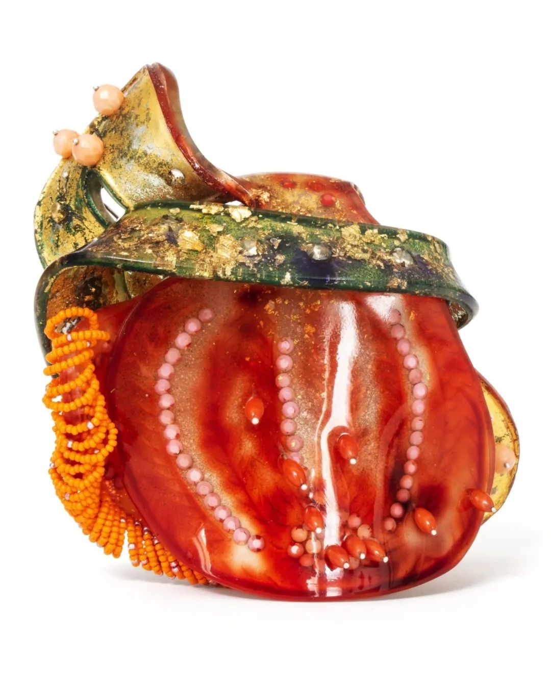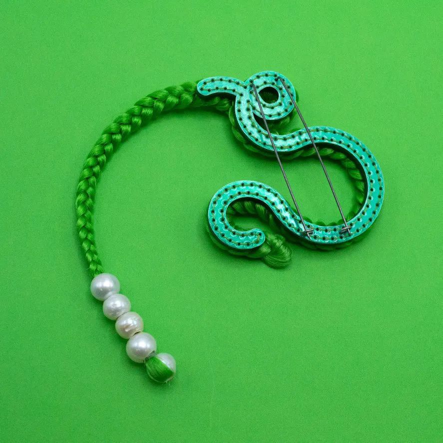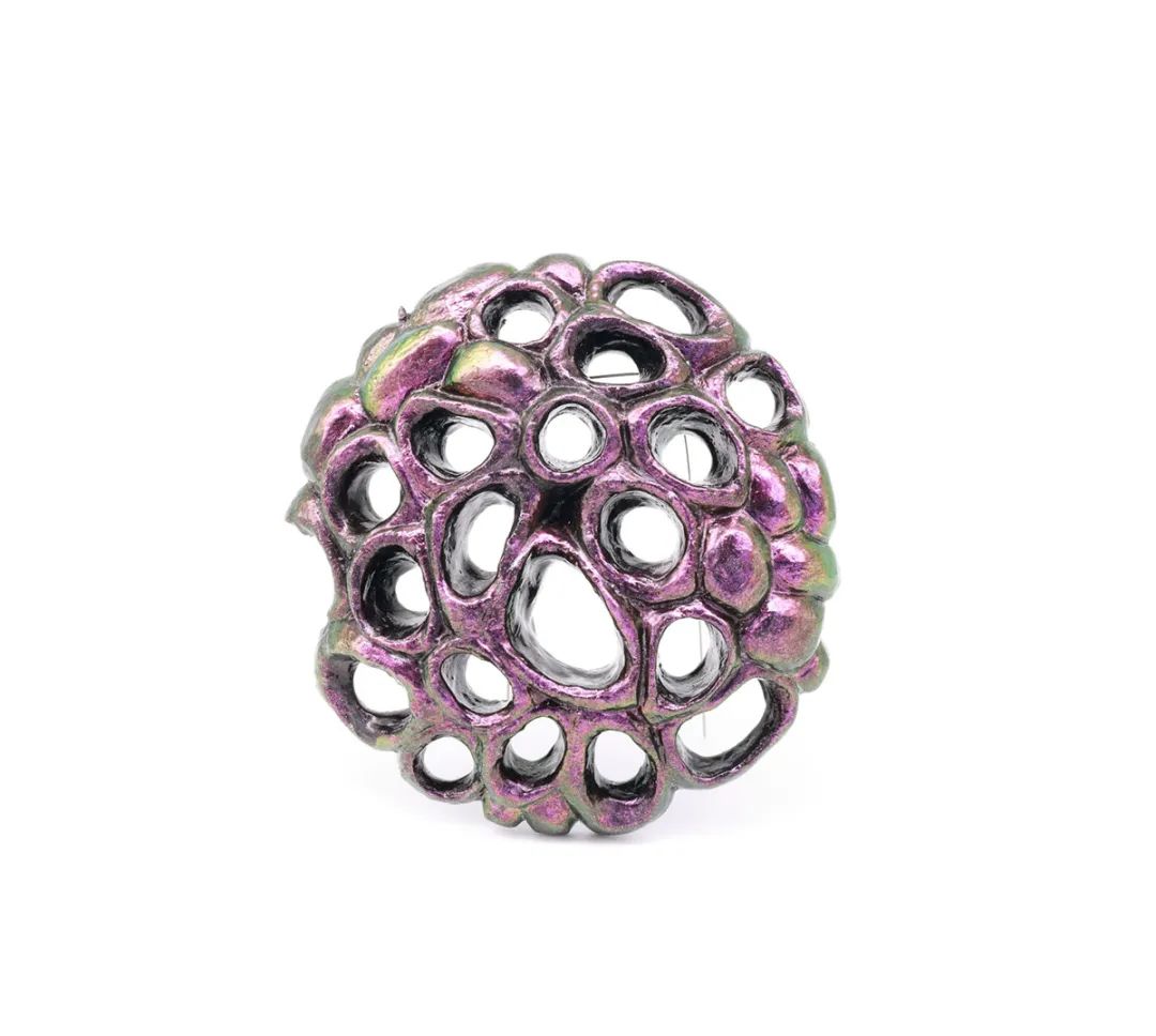 Pistachios 選擇了三位當(dāng)代珠寶藝術(shù)家,他們?cè)谧髌分惺褂酶挥邢胂罅痛硇缘膱D像來創(chuàng)作俏皮和異想天開的作品。Jessica Calderwood、Seth Michael Carlson 和 Melinda Risk 將可識(shí)別的形式變成可穿戴的雕塑, 模糊了具象和抽象之間的界限。