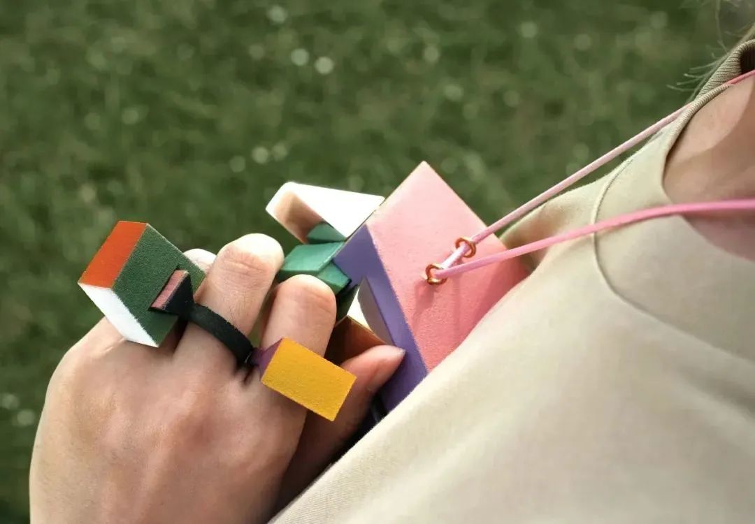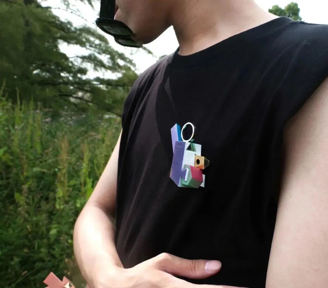 對于留守兒童,有限性意味著物質(zhì)和實體的存在,而無限性意味著創(chuàng)造、想象和精神世界。通過結(jié)合這些兒童的繪畫,我重新使用了我的“語言”來繪制新聞,然后將其轉(zhuǎn)化為具有榫卯結(jié)構(gòu)的圖形塊,使其可以以無限的方式組合。因此,我試圖在材料的語言中尋找無限的可能性,打破傳統(tǒng)珠寶的常規(guī)界限,給人們帶來無盡的想象。