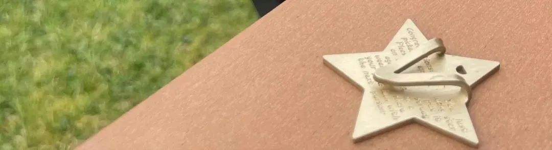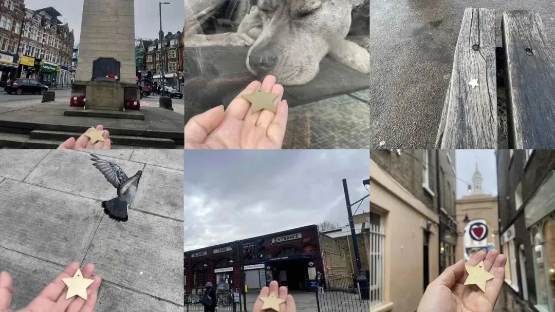 “恭喜你!你剛剛撿到了幸運之星。請在一周后再次將它放在街上,與下一個人分享你的好運。” 這是星星背面刻著的文字。這件珠寶有著自己的生命,人們的愿望幫助它在這個世界中旅行。它行走的越遠,接觸的人越多,它的力量就會越強大。因此,本質(zhì)上它是一種集體創(chuàng)作,凝聚了社會共識,聚集了眾人之間的善意,是一種精神互助的過程。