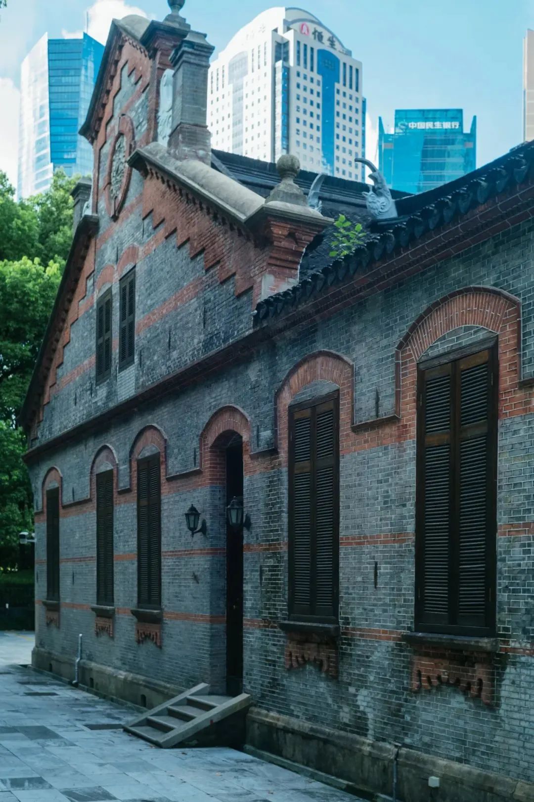 其次,建筑所在的陸家嘴地區也是一個“劇場”。與上海老城區的傳統石庫門和典型弄堂社區截然不同,僅僅幾十年間,陸家嘴已被現代化的辦公樓、購物中心和高檔住宅所覆蓋,其外立面被現代化的玻璃幕墻所包裹。在吳昌碩紀念館的中央庭院,我們可以看到一個近乎超現實的景象——傳統民居飛檐的背后,上海最高的三座摩天大廈,金茂大廈、上海環球金融中心和上海中心大廈,直插云霄。在古老宅邸和現代高樓之間,上演了一場關于古與今、動與靜的深刻對話。