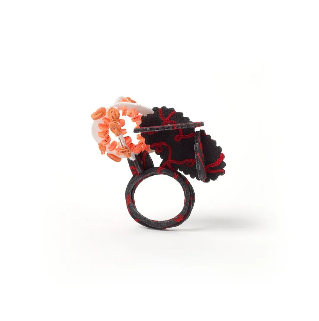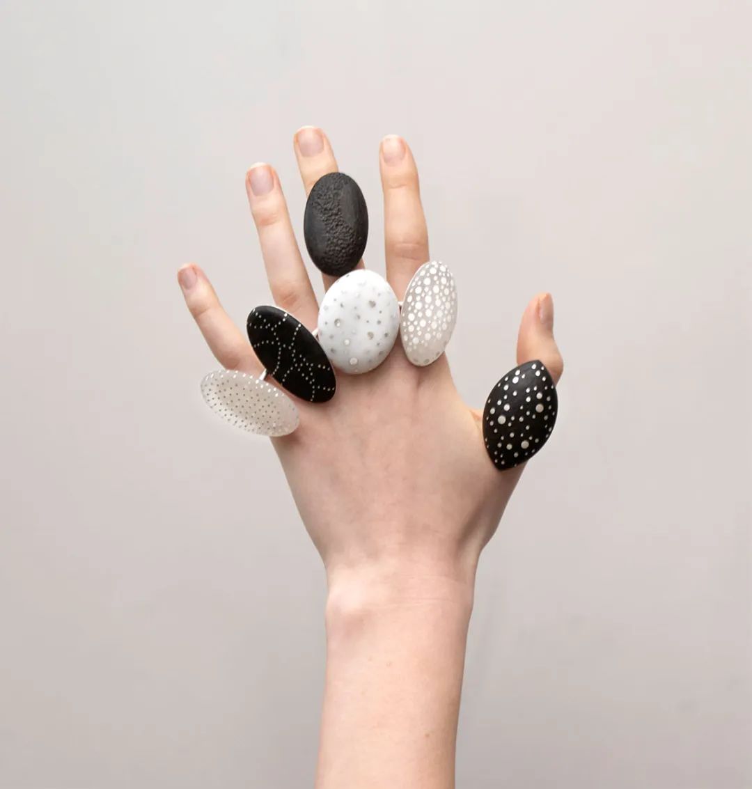 在這次于 Galerie Door 舉行的節日個展中,她展示了六系列使用金屬、紡織品、木材和琺瑯制成的藝術珠寶作品,從而探索了她對自然的熱愛、童年的記憶以及平面與 3 維之間的視覺游戲。想象。一場視覺盛宴和豐富的想象力。
