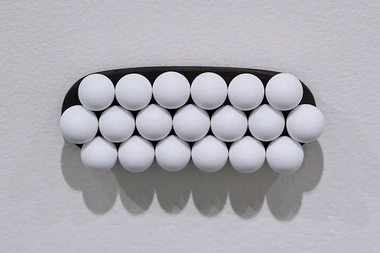 這些色彩鮮艷的串珠項鏈由 Manon van Kouswijk 制作,在墻上作為一組展示時,既具有圖解形式主義,又可以隨意、愉悅地穿戴在身上。第一系列名為《建筑和身體的珠子》,去年在 Alta Forma 的“墻臂和桌腿”展覽中展出。在第二系列作品中,Manon 將早期作品中體現的理念推向了新的邏輯,但令人驚訝的點。