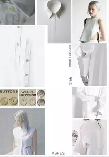 接下來就是設(shè)計(jì)作品集中不可缺少的moodboard(情緒板),情緒板是在工業(yè)產(chǎn)品設(shè)計(jì)中也經(jīng)常需要用到的,但是在每個(gè)專業(yè)中情緒板的作用和包括的內(nèi)容是截然不同的,在服裝設(shè)計(jì)中,情緒板可以由inspiration board、color board、material board、detail board等組成。給大家舉的例子就是material board和color board,當(dāng)然moodboard也可以用一張圖來表現(xiàn)。