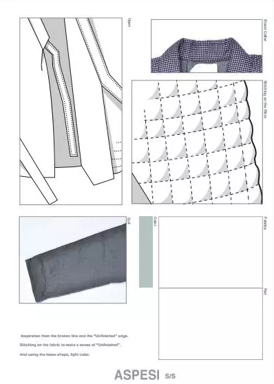 第三,設(shè)計(jì)的衍生發(fā)展過程是最重要的,因?yàn)榭梢苑磻?yīng)作品創(chuàng)作的流程,你的成衣是經(jīng)過一系列嘗試實(shí)驗(yàn)得來的,而不是憑空而來的。