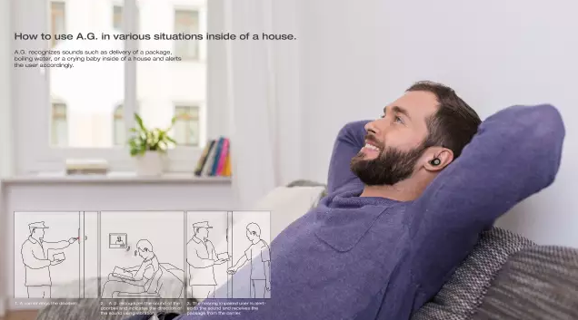 Assistant Glasses Set是為了幫助聽障人士的日常生活所設計,讓聲音及風險因素視覺化,并通過震動提示。因為失去聽力,許多聽障人士面臨著從聲音當中獲取資訊的困難。比如當有訪客按響門鈴、當某個警鈴響起、開水煮沸的時候,輔助眼鏡組能將這些聲音視覺化,并且指示這些聲音代表的意義及來源方向,使他們能夠簡單地處理這些聲音信息。此外,它還會對于街道上可能意味著危險的聲音做出提示,像是汽車喇叭,以確保用戶的安全。