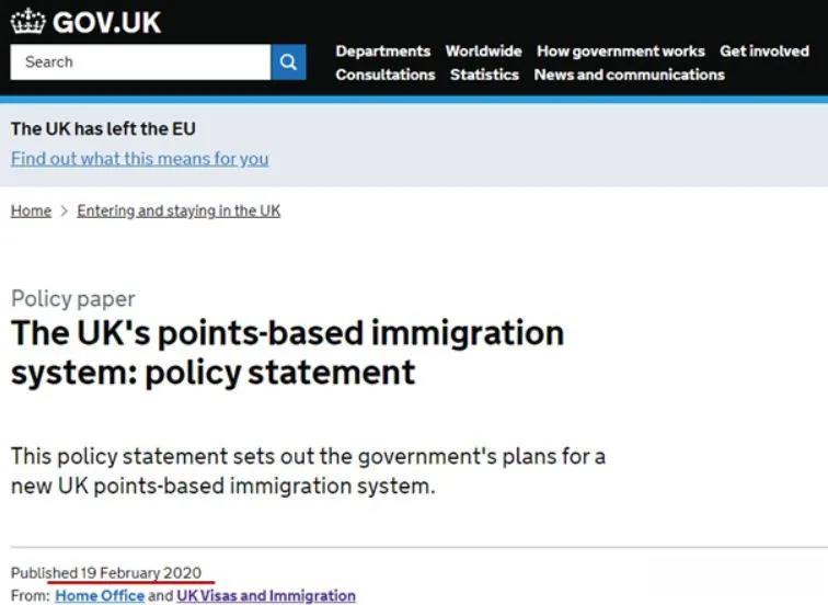 英國當(dāng)?shù)貢r(shí)間2月19日,英國政府發(fā)布了全新積分制移民體系的詳細(xì)政策說明,將在脫歐過渡期結(jié)束后,也就是2021年1月1日生效。這是英國自1973年來英國移民政策發(fā)生的一次最大的變化。