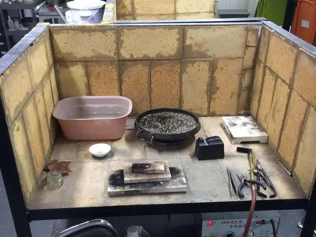 焊接區亦是首飾工作室重要的區域之一,主要滿足焊接、退火、熔料等功能。焊接區:主要配備火槍、焊接臺、有焊接功能的工作室要具備通風管道設備等。
