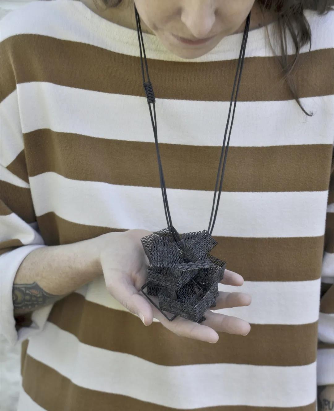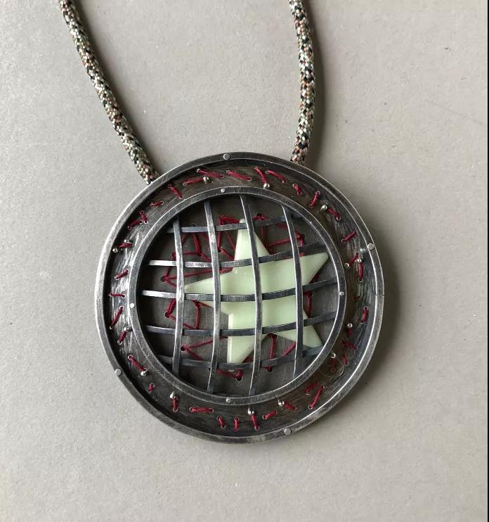 藝術家 Barbara Seidenath能感受到疫情的嚴肅與無情,但她仍試圖在最初被認為是負面的情況里尋找積極的一面。許多學生在疫情期間無法使用工作室,因而渴求有機會學習一些以非金屬為中心的新知識,于是Barbara邀請擅長刺繡與串珠的首飾藝術家Breana Ferrara為學生們開啟了線上首飾課堂。這項新學習到的技法也成為本次創作的最佳呈現方式。
