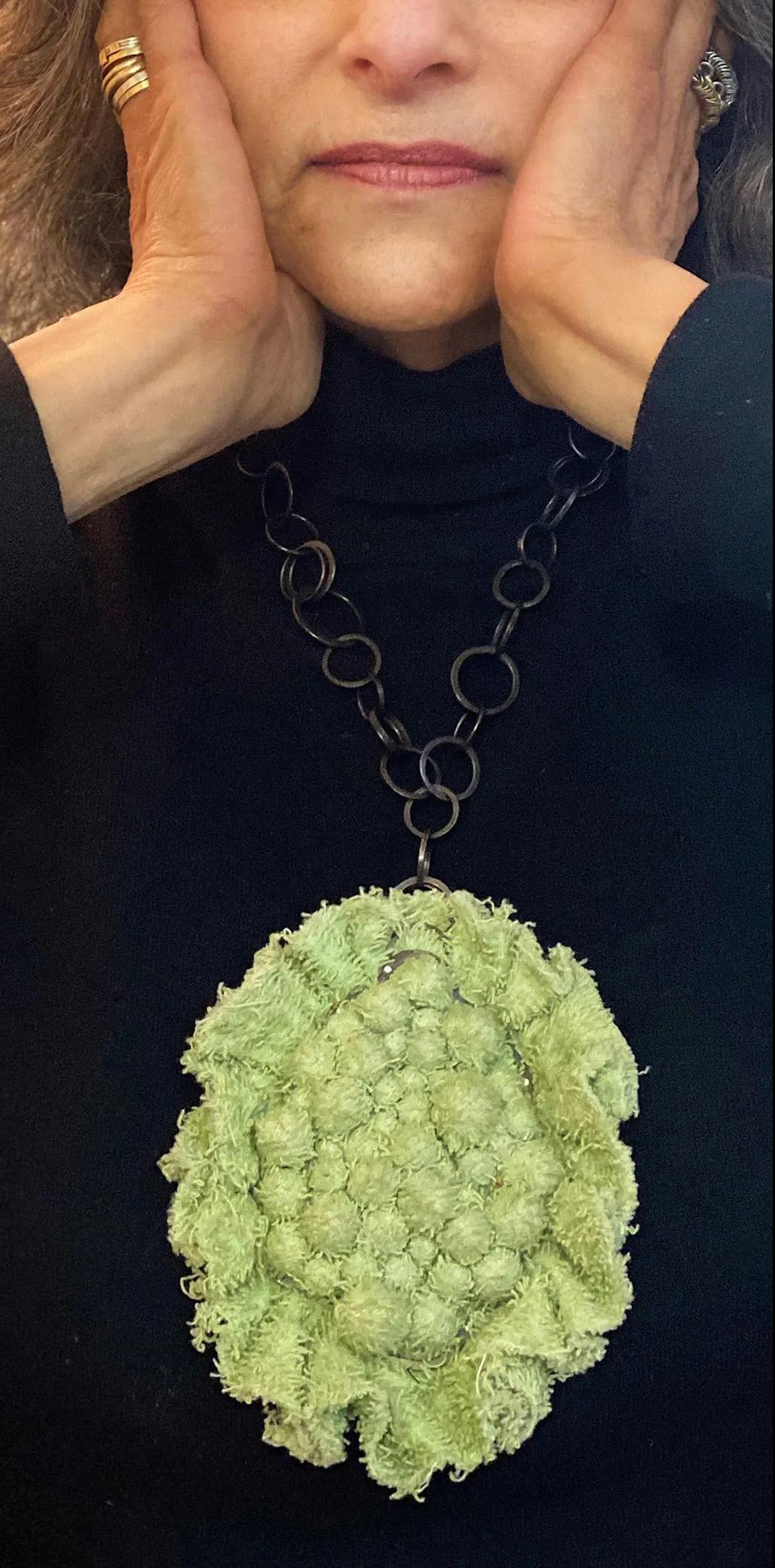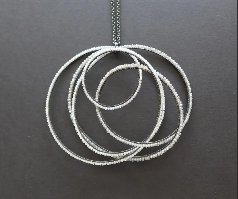 Biba Schutz的作品表現(xiàn)了她在這個特殊時期身心、創(chuàng)造、情感上的躲藏——球體被包裹與隱藏,他們的秘密被擋在了外面;而可轉向的項鏈則能讓你在一側可以看到包裹的球體,在另一側看到的卻是隱藏和被保護的球體。作品的每個部分都有著脆弱、經(jīng)歷、恐懼和某個時間的不同含義。