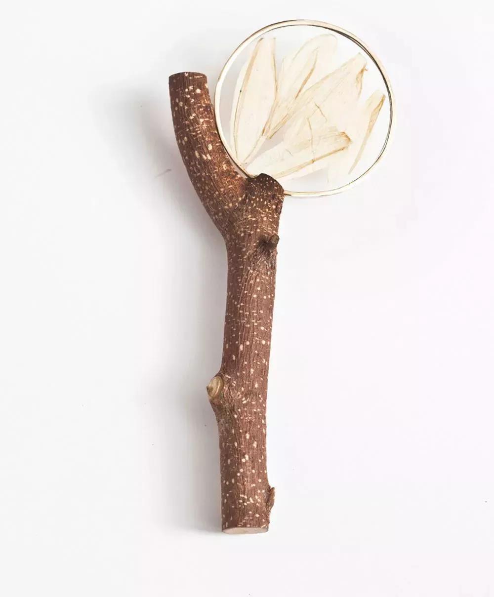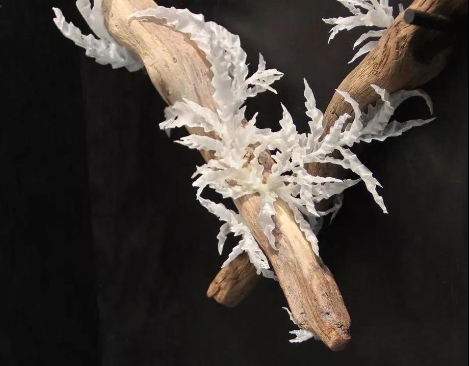 蒼白的葉子松散地掛在樹枝上,模擬、植物的形態。葉片與樹枝共同組成項鏈的一部分。