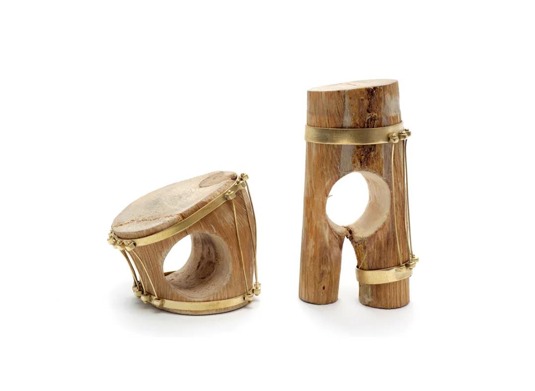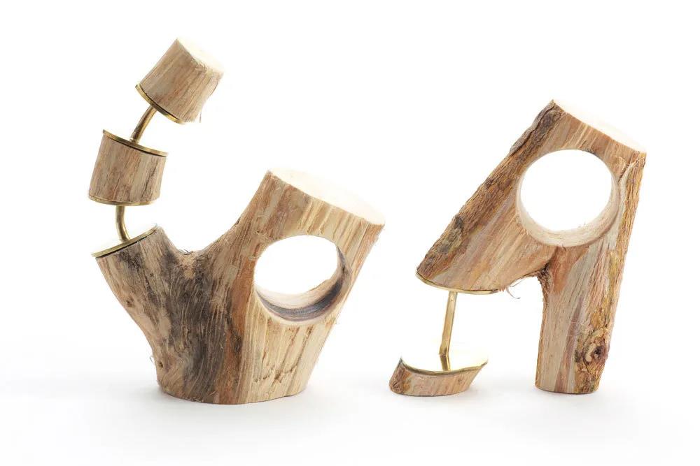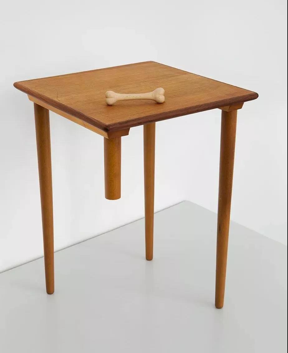 時光流轉,社會及其對美的定義也一樣。被“截肢”了的桌子作為胸針的基座,胸針在未佩戴時成為裝置的一部分。 由此,首飾既與人體有關,又與另一個物體相關,與它進化成裝置的物體有關,與它所身的房間有關。