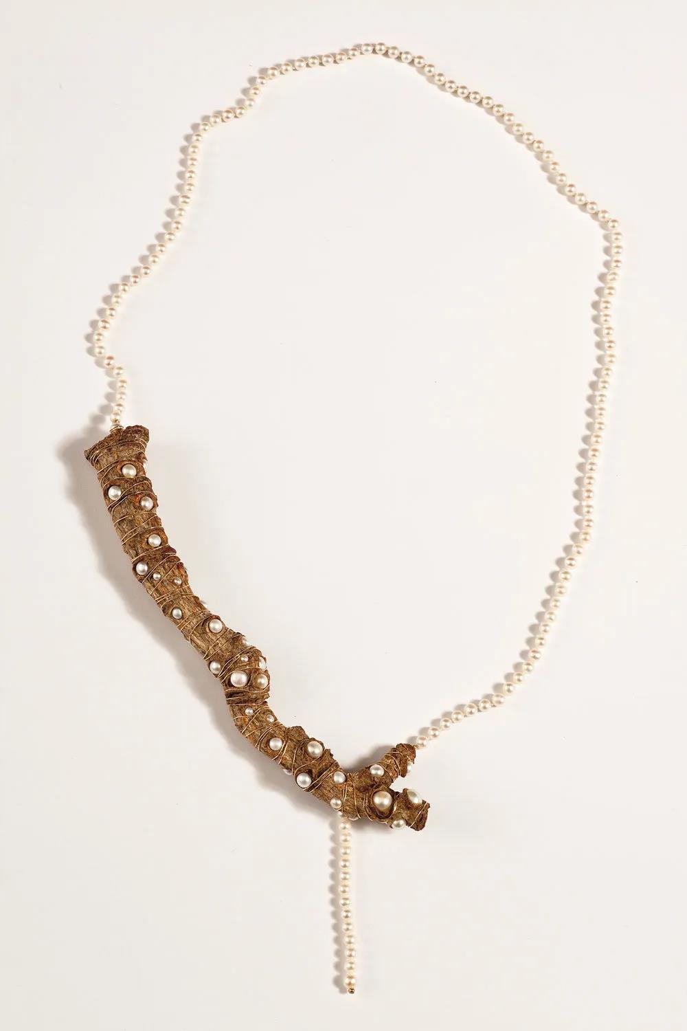 這條項鏈被放在木箱里,仿佛是在一次科學考察的偏遠叢林中發現的。就像近幾十年來我們慢慢沉浸在塑料中而出現的東西一樣。