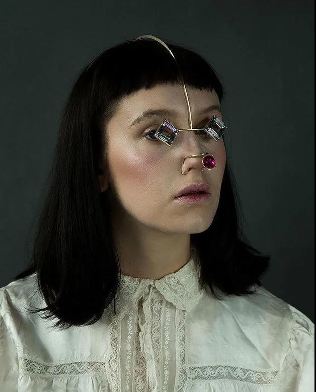 來自日本的藝術家Akiko通過一系列面飾設計,通過試圖改變臉部的器官長相,無需通過整容即可獲得更完美的樣子,來引起人們對外在美與實際價值的思考。而鑲嵌在面飾上的施華洛世奇水晶,代表著普世價值下的美。