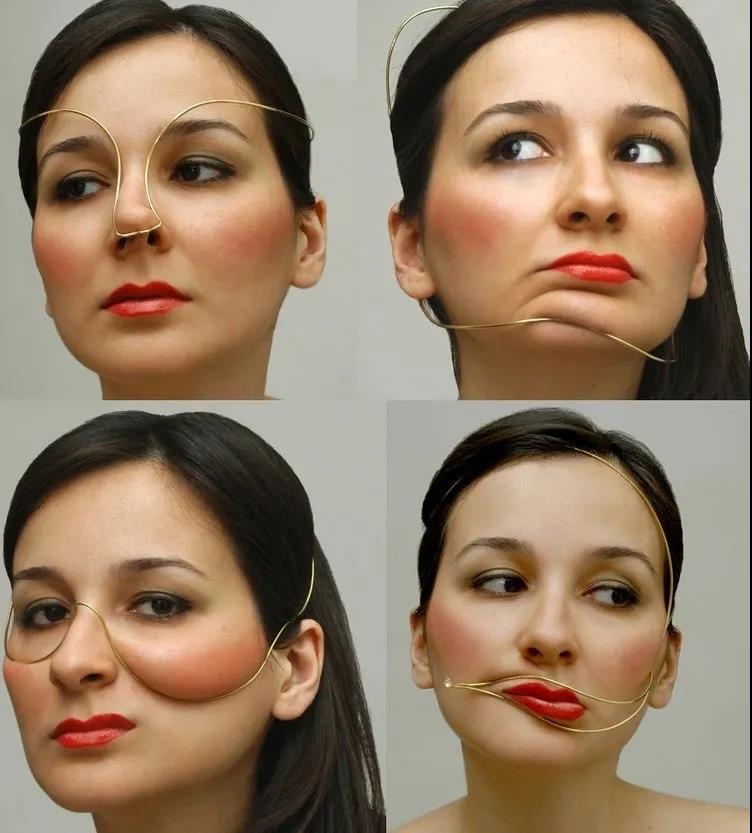 藝術家Burcu的這個面飾系列,同樣試圖通過面部器官的擠壓扭曲變形改變佩戴者原有的樣子,引起觀者對時下整容盛行,女性外貌恐慌話題的思考。