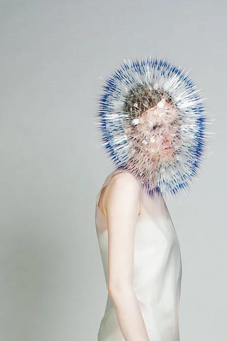 藝術家Maiko以水母為原型創(chuàng)作了這個極具視覺張力的頭飾系列,靈動的材質在實際佩戴時像水母一樣輕輕拂動,漸層的顏色更加模擬了水母的美。