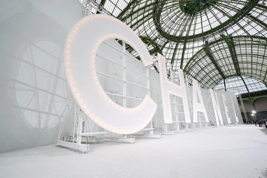 影片最末,鳥瞰鏡頭朝著巴黎傳奇演出場所大皇宮(Grand Palais)的標志性拱形玻璃天花板延伸,將時尚之都巴黎與電影之都洛杉磯融合進大皇宮之下,整個Chanel秀場置于其中。令觀者一下子恍然大悟,仿佛沉浸在一場奇幻而懷舊的戲中戲之中。與此同時,也揭示了新一季的Chanel將圍繞著電影(Cinéma)的主題呈現,訴說Chanel從好萊塢電影的黃金年代到法國新浪潮時期并延續至今的電影情緣。