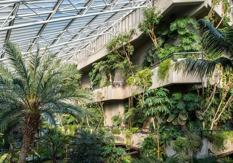 不得不提的是,巴比肯藝術中心里面設立的溫室植物園,其內培育著2000多種各類熱帶植物,遍布在劇院后臺的混凝土墻上,綠色的植被將建筑融合成一個有機體。在園區里,每周天的下午有開放下午茶,一般來說需要提前2周預定。某些特定的時間,植物園里會開講座和音樂會。