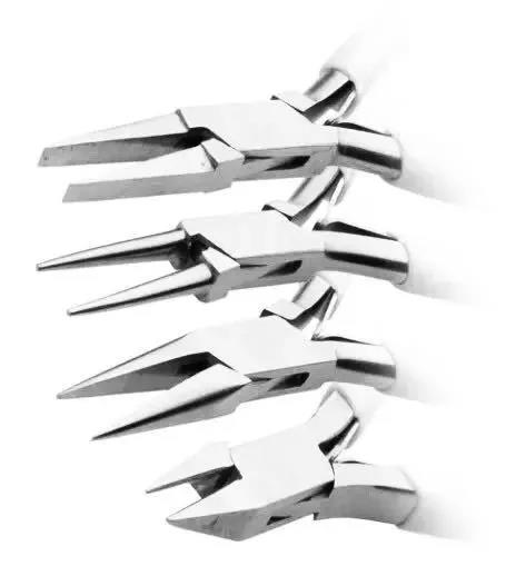 通常首飾制作大部分會用四把鉗子:平頭鉗、圓頭鉗、尖頭鉗、剪鉗。主要用于拔絲、剪線、扭形等。