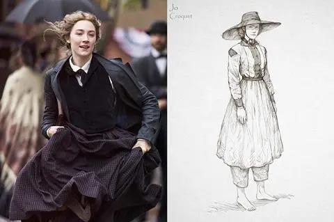 美國電影《小婦人》在第92屆奧斯卡頒獎(jiǎng)典禮上獲得了最佳服裝設(shè)計(jì)獎(jiǎng),設(shè)計(jì)師杰奎琳·杜蘭用色彩及服裝樣式區(qū)別四個(gè)女兒的性格讓人印象深刻。二姐喬是作家,假小子,最不墨守成規(guī),所以她的服裝沒有緊身胸衣,更能在行動(dòng)上自由自在,而顏色也選擇堅(jiān)毅且中性化的紅色和靛藍(lán)色。“我創(chuàng)建了一個(gè)情緒板,研究了很多年代精確的繪畫,以獲得對(duì)那個(gè)時(shí)代的感覺。"