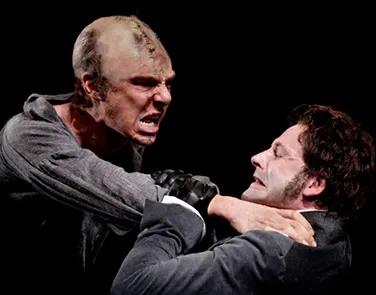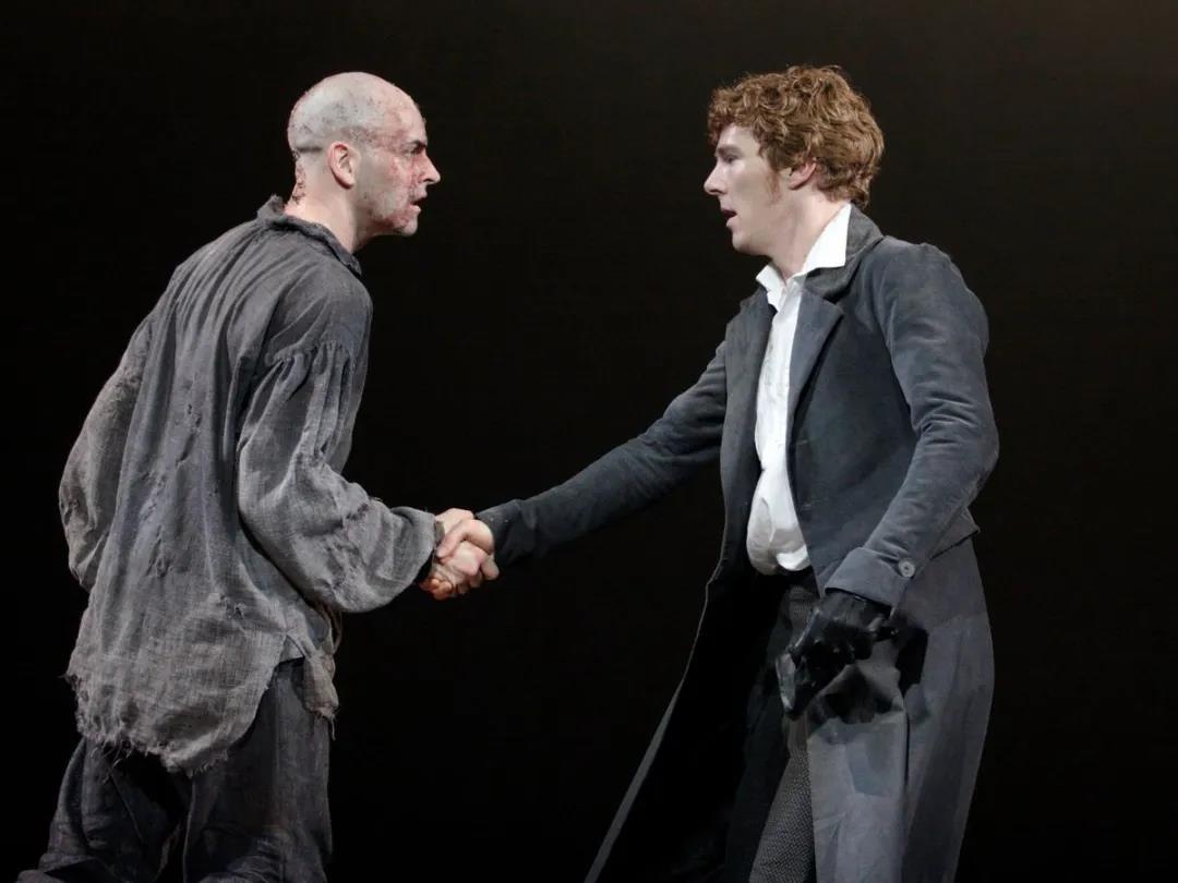 在NTLive版的《弗蘭肯斯坦》中,“卷福”本尼迪克特·康伯巴奇和約翰尼·李·米勒交替出演科學(xué)家弗蘭肯斯坦和他創(chuàng)造出來的怪物。“破衣爛衫”與“西裝革履”兩套戲服的對(duì)換,讓造物者和被造者之間同時(shí)產(chǎn)生對(duì)立與共通,角色在外表上呈現(xiàn)出了反差,卻隱秘地展示出了情感中的藕斷絲連。