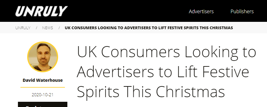 根據視頻廣告公司 Unruly and Tremor Video 的研究顯示,今年有47%的人希望圣誕廣告能讓他們感到快樂,44%的人渴望感受溫暖,31%的人尋求懷舊。