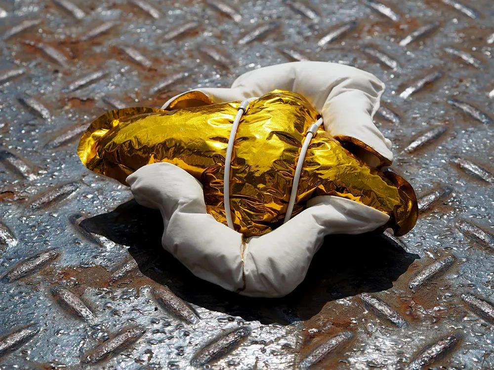 在創作《驚喜元素》系列時,畢業于謝菲爾德哈勒姆的首飾藝術家Anderi Jakab運用了大量的仿金銀箔紙元素作為禮物包裝紙和驚喜的象征。