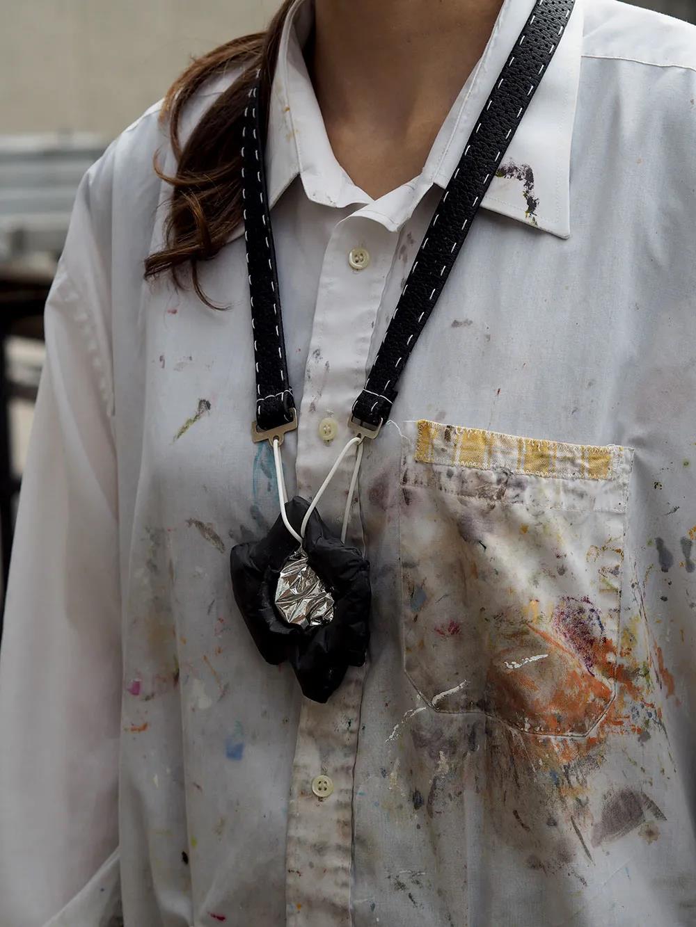 容器項鏈的想法是想誘惑佩戴者,因為形狀的暗示,使人想起膨脹的袋子。目的是讓佩戴者在與首飾產生互動前能再次思考。