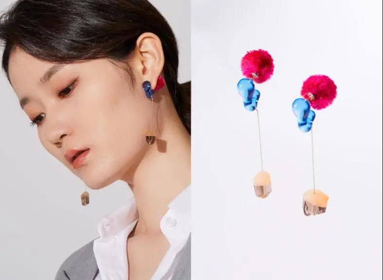 耳環(huán)雖采用了不對(duì)稱設(shè)計(jì),但佩戴時(shí)卻帶來(lái)了一種和諧的平衡與張力。通過(guò)對(duì)透明戈壁石的特殊處理和運(yùn)用,簡(jiǎn)潔的幾何設(shè)計(jì)語(yǔ)言保留了天然的石材特質(zhì),為都市獨(dú)立女性帶來(lái)一份內(nèi)心的平靜。