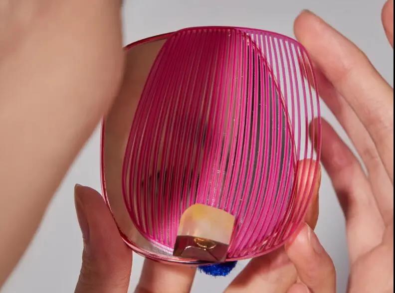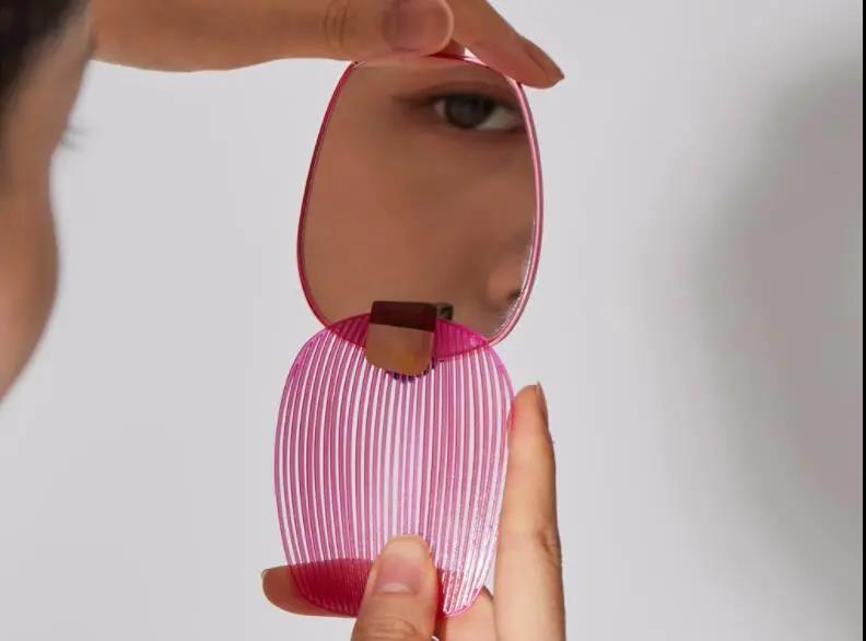 在 Linna 眼中,當(dāng)代藝術(shù)首飾不僅能表達(dá)藝術(shù)家個(gè)人的情感,還能憑借這種創(chuàng)作力與他人產(chǎn)生共鳴,表達(dá)一種社會(huì)背景下的情緒。化妝鏡這個(gè)小物件是生活在國(guó)際化都市的現(xiàn)代獨(dú)立女性必備的生活用品,Linna 希望當(dāng)她們?cè)谑褂眠@面鏡子時(shí),可以通過(guò)鏡中的條紋看到自己看不見(jiàn)的臉,從鏡子的反映中找到自信和真實(shí)的自己。