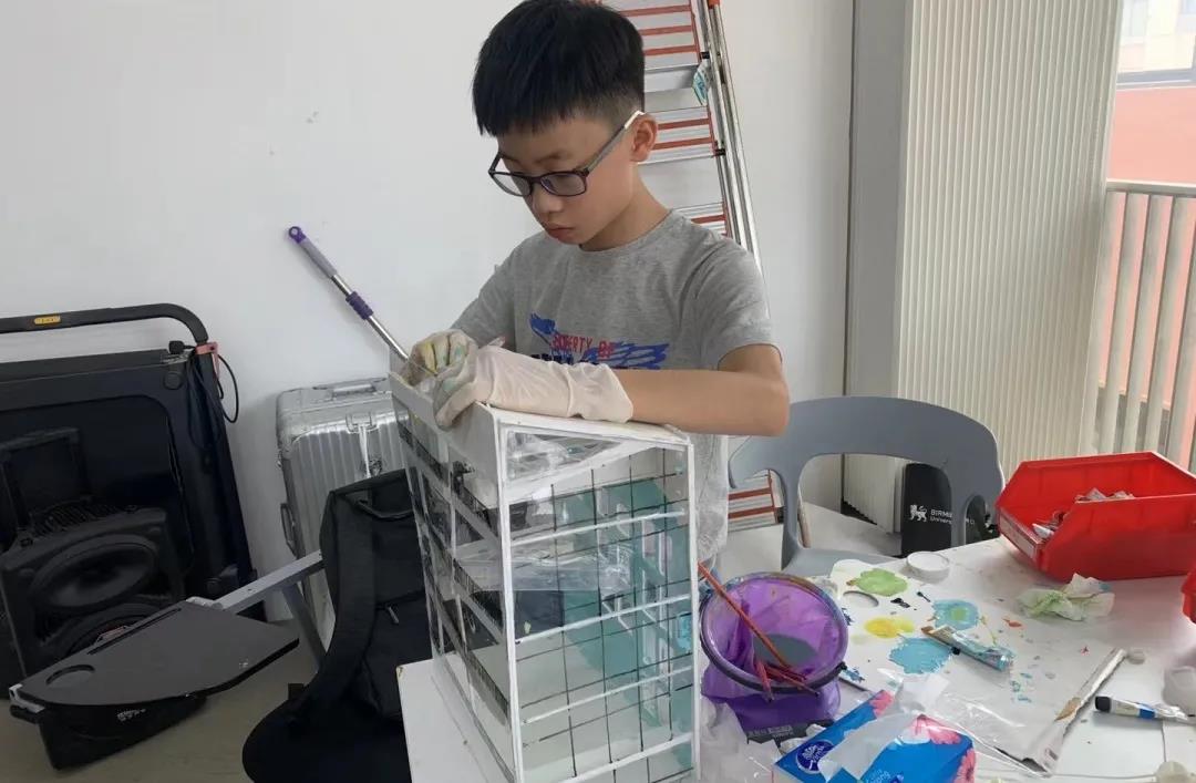 ▲ Yang的雙胞胎弟弟Chen也完全不輸哥哥,同樣是初一的年齡,6次課的時間,他將AIVA學校大樓的中庭改造成了一個非常藝術的展示空間,有滑梯,有連廊,最終的成品讓所有人都直呼“WOW”。