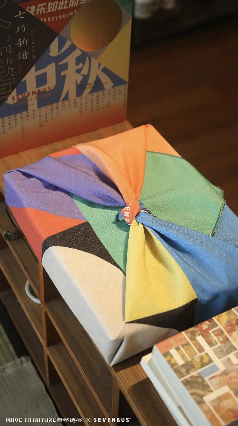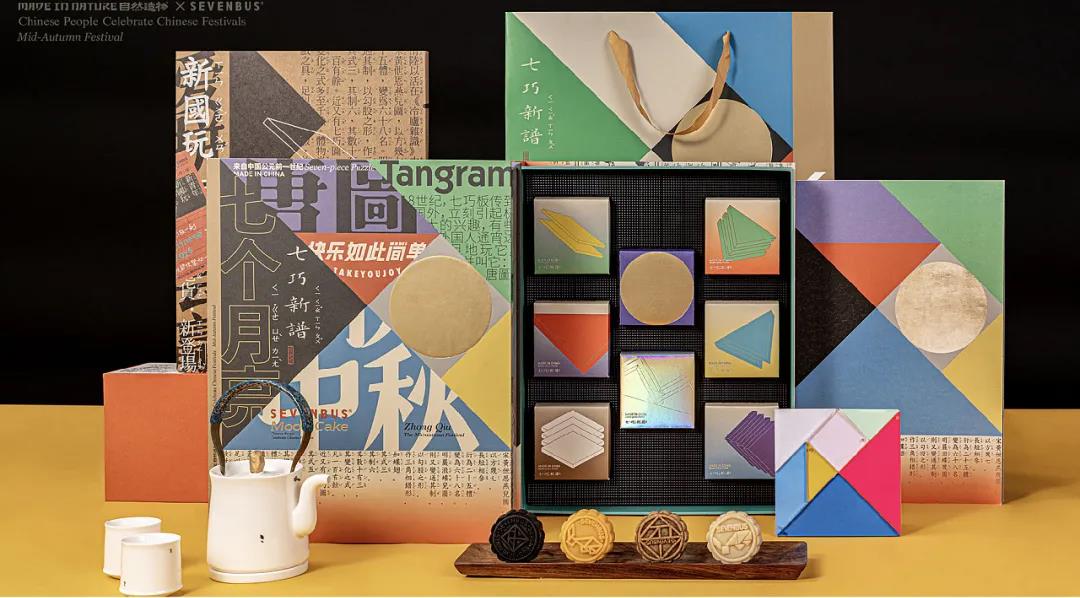 “自然造物”自2017年起,發起中國傳統年節復興計劃“大過中國節”,讓傳統年節能回歸到當下生活。2021年中秋,帶來了以凝結中國傳統智慧的“七巧板”為靈感的特別禮盒。除了美味的月餅,禮盒中還有一組亞克力材質的七巧板和《七巧新譜》小冊子,可以邊吃邊拼搭。禮盒被做成一本書的形狀,并用“十方斤”包裹,古樸又浪漫。