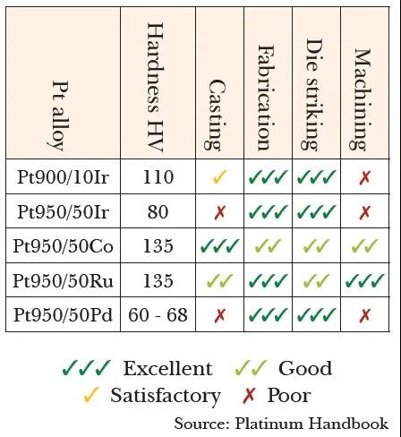鉑合金加工特性列表