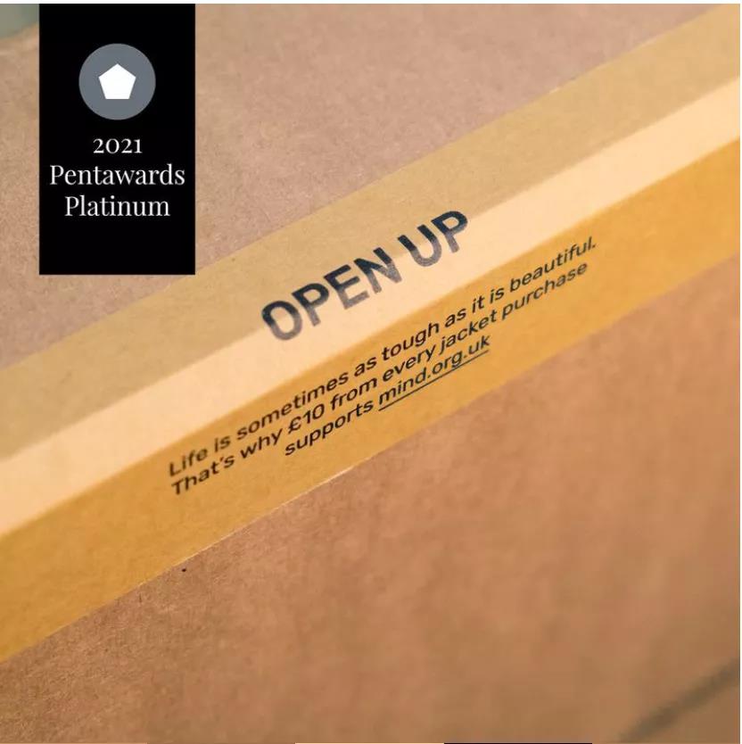 甲蟲元素巧妙地展示了 FRAHM 服裝適合在各種天氣下外出的機能。包裹封口的膠帶上印有的“Open Up”,鼓勵大家開放心態,不需為了談論自己的心理狀態與健康感到尷尬。