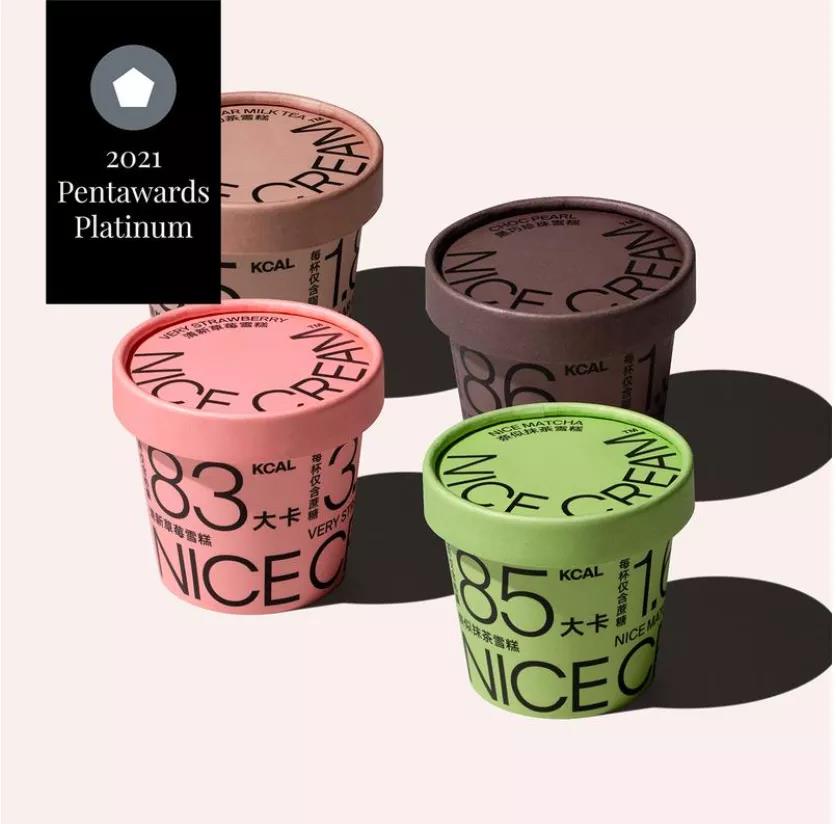 Han Gao 為 NICE CREAM 低熱量健康冰淇淋設計了一系列標志、品牌視覺和包裝,利用放大的字體和獨特的排版,為設計帶來活力。