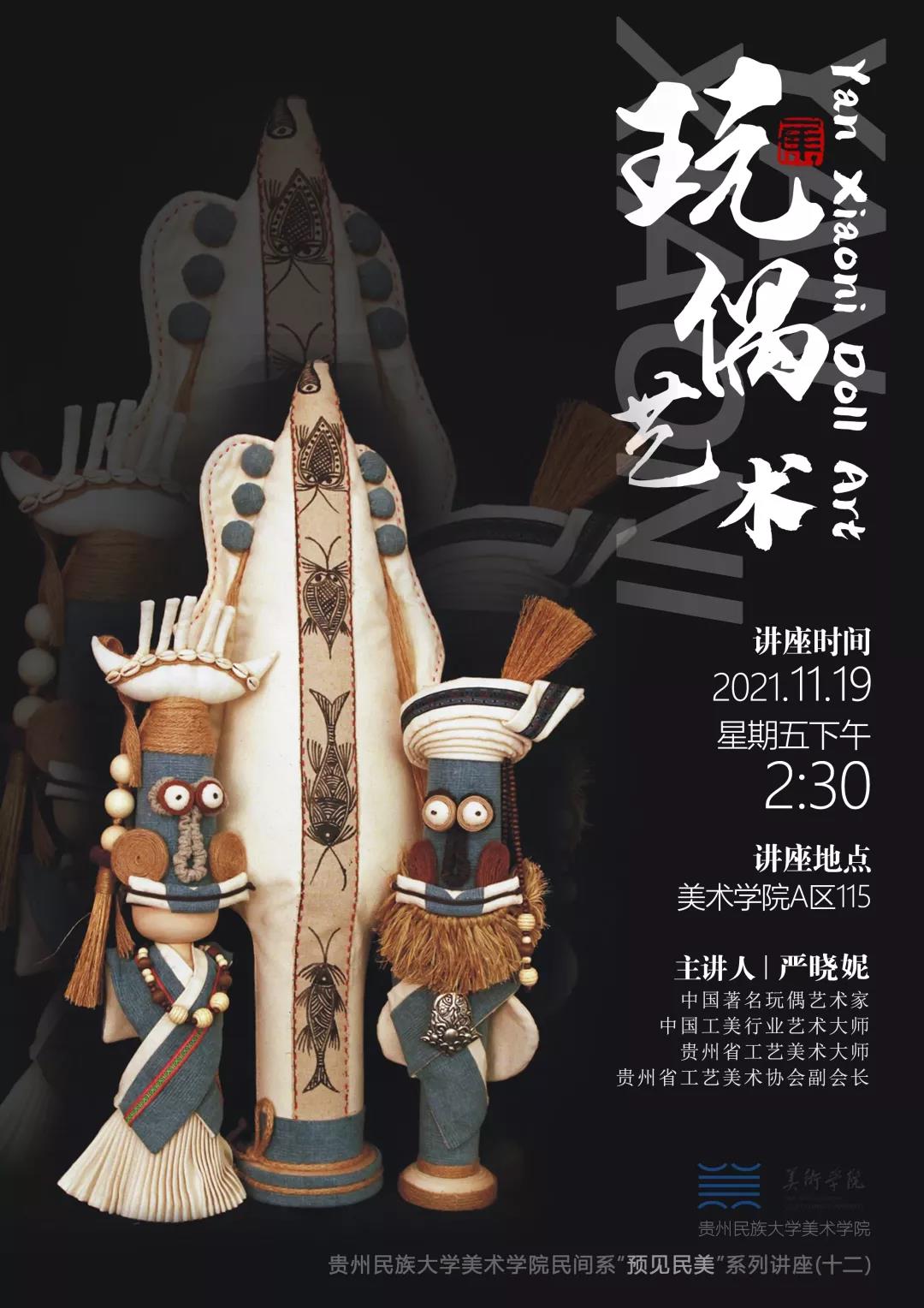 嚴老師講述了自己的工作經歷與創作生涯。她的作品從民族娃娃到圖騰娃娃系列,從彩妝、棒棒糖到貴州故事系列,從大荒——巖畫娃娃系列到亞魯王和黔山海經系列,無不精美。她的整個創作歷程演繹了一個手工藝人的傳奇人生,她的玩偶藝術創作從未停止……
