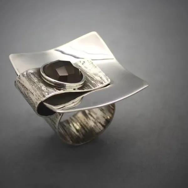 and smoky quartz ring textured.