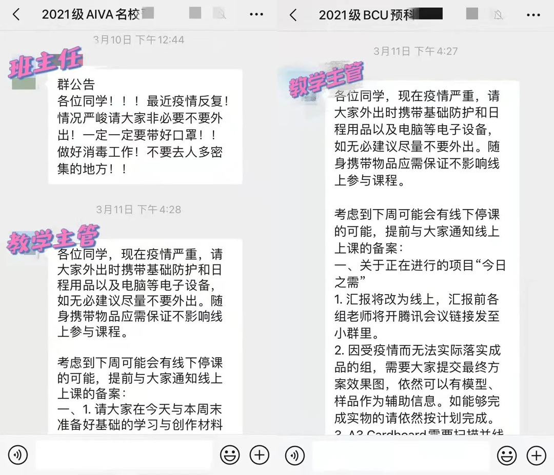 ▲ 教學(xué)主管老師與班主任第一時(shí)間在群里通知同學(xué)們做好防疫準(zhǔn)備,并與學(xué)生家長(zhǎng)保持溝通。