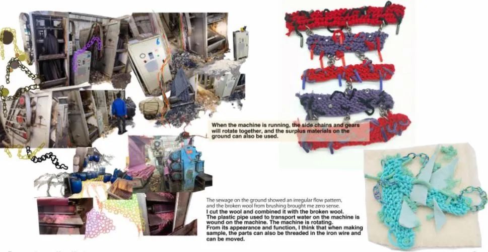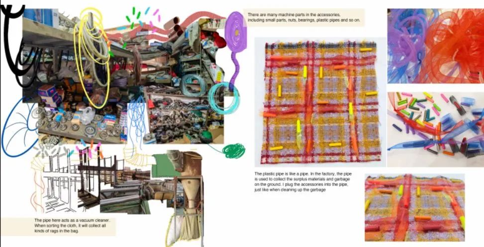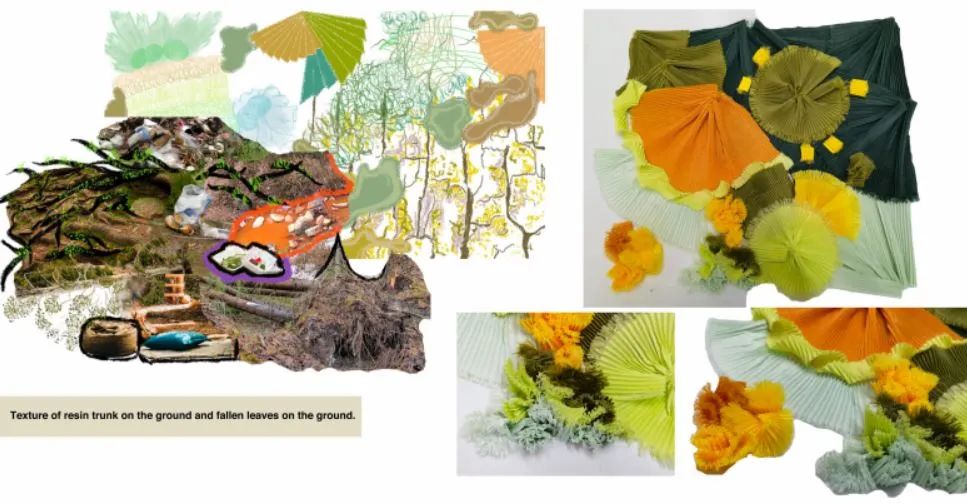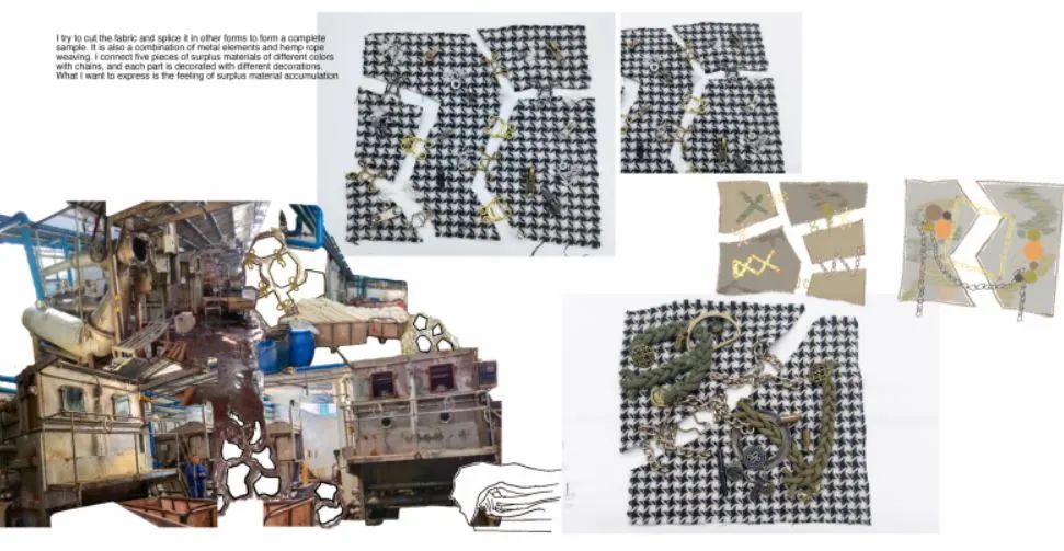 其實(shí)對我來說,做research和拼貼是最難的。做sample以及材料的選擇和運(yùn)用我還是比較在行的。但拼貼因?yàn)橹皼]做過,比較生疏,還是葉老師一步一步教我的。葉老師真的教了我很多,還教我怎么用Procreate,給我示范畫草圖,做拼貼,立裁,打版,做樣衣,帶著我捋思路等等等等,就差握著我的手幫我做了!啊哈哈哈。面試前葉老師也幫我改了好多次稿子,有個七八九個版本了,特別耐心。