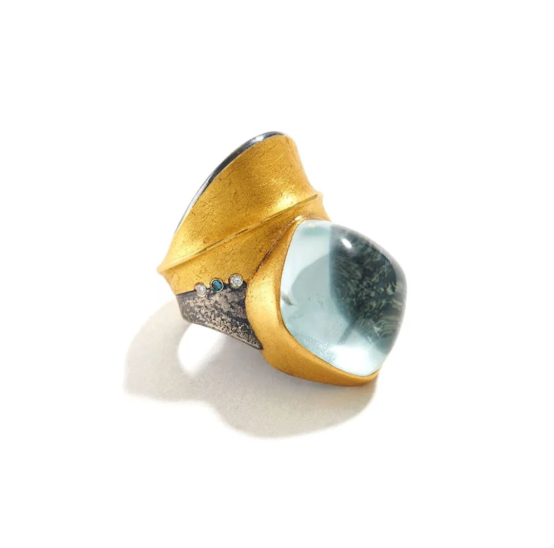 Schmid 再次大膽突破極限,展示了他的全新創(chuàng)作系列,靈感來自于充滿戲劇性而強大的藍色。他探索大膽的設計,用豐富的青金石、少量的碧璽、乳白色的月光石、閃閃發(fā)光的藍寶石和其他鑲嵌于鉑、金和銀中的閃耀寶石等材料創(chuàng)造。Schmid 在奢華的寶石和前衛(wèi)藝術(shù)之間建立對話,繼續(xù)制作超越首飾可穿戴規(guī)模的作品,放大其固有的獨特性。