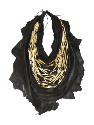 這些獨特作品起源于他喜歡的一些材料的質(zhì)感:木材、種子膠囊、皮革、紙、金屬和牛角。通過一系列過程,它們被改造成最終的美麗。他將修道院工藝的技能與對高級時裝的敏感性相結(jié)合,創(chuàng)造出令人驚嘆的當代首飾。