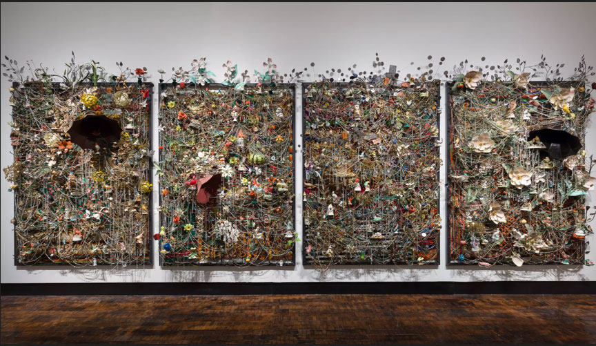 芝加哥當(dāng)代藝術(shù)博物館首次展出國際知名的芝加哥藝術(shù)家Nick Cave(美國,1959 年生)在職業(yè)生涯中的創(chuàng)作與調(diào)研。這位藝術(shù)家以將社區(qū)建設(shè)與充滿活力的跨學(xué)科藝術(shù)作品相結(jié)合的項目而聞名,作品形式包括沉浸式裝置、紋理性雕塑、無可挑剔的時裝、以及充滿活力的視頻和表演。展覽展出藝術(shù)家許多未曾公開的作品,包括廣受歡迎的Soundsuits系列的延續(xù),其中包括Soundsuits 9:29的首演,以及由數(shù)千個懸掛在博物館兩層中庭和四樓大廳的動力紡紗機組成的迷人裝置Spinner Forest。