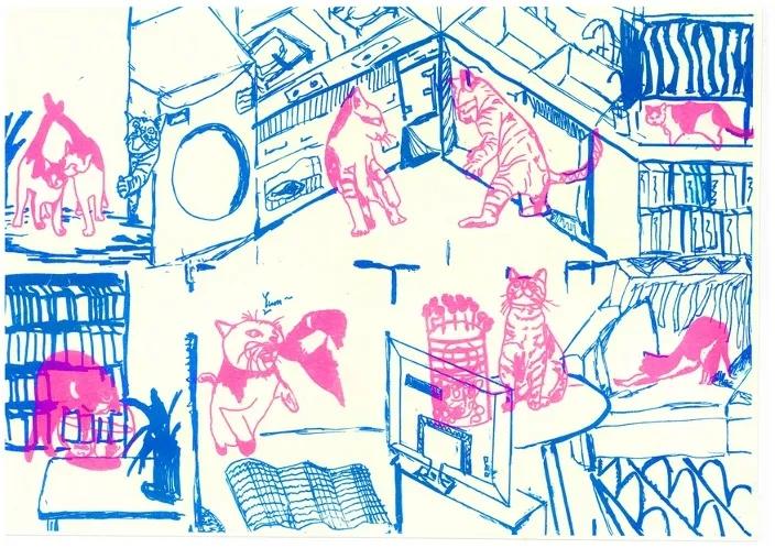 Risograph最大的吸引力是顏色和網點質感,當印刷多種顏色時,由于不好把握套色的對位準確性,印刷出來的作品反而常常帶來意想不到的驚喜,這使得Risograph成為了屏幕藝術家們的心頭愛。