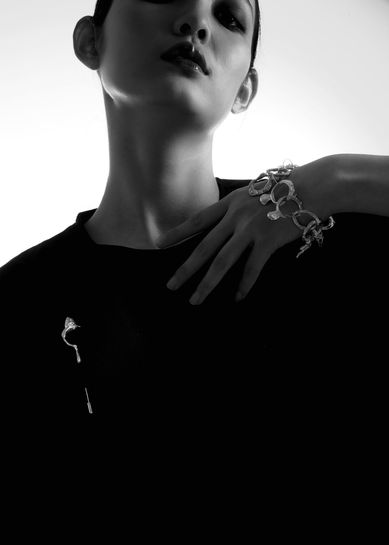 我熱愛寫作,無論作品類型,敘事性都是不可或缺的重要元素。在創作過程中,我一直追問自己:“如何講一個故事?”雖然作品是藝術家的信息,但在我看來,“發出宣告”和“說個故事”是有區別的。我想在個人作品中探索和運用敘述方式,創作出讓觀眾可以“閱讀”的首飾作品。