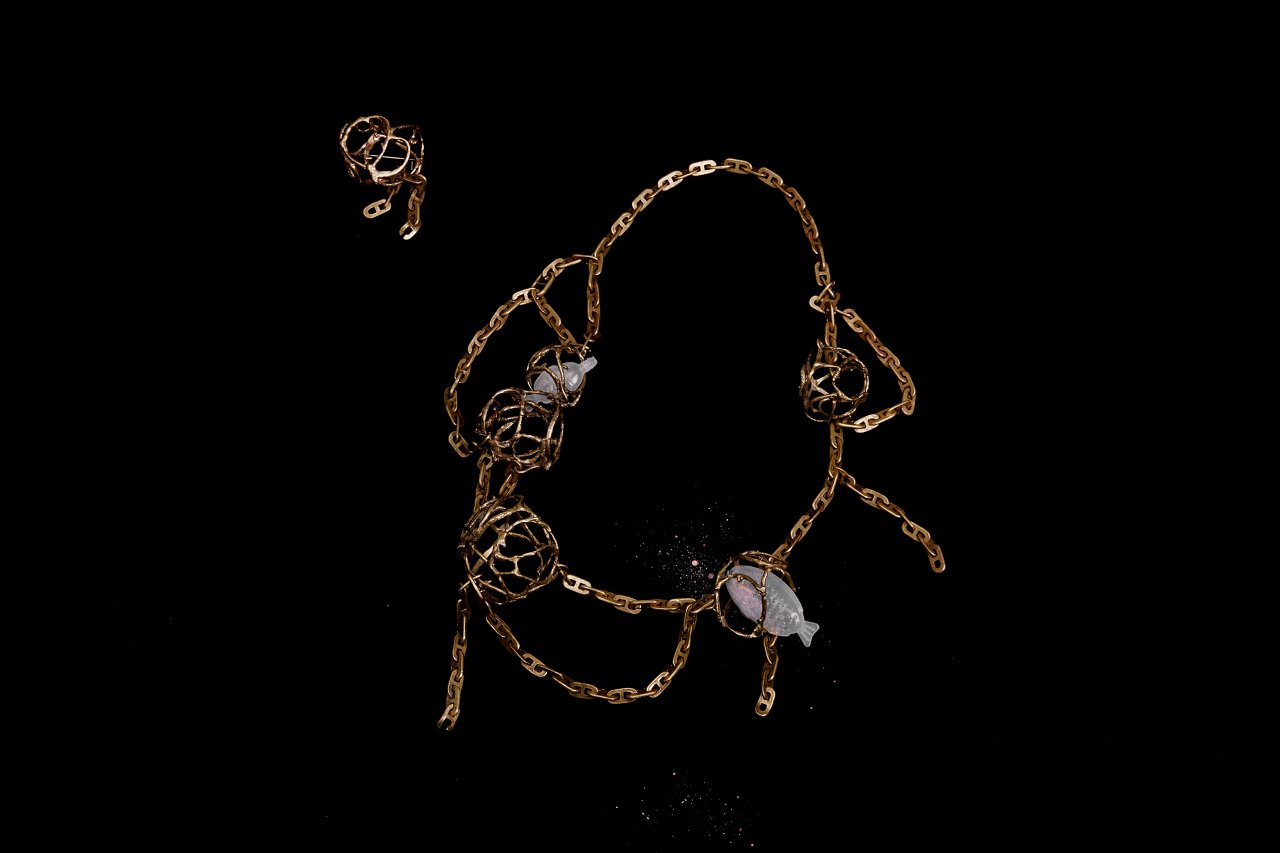 <The Journey of Microplastics> includes two different branches, The Coral Bone and Cage, their core idea is to draw people's attention to microplastic pollution and the urgent hope for a sustainable transformation of the fashion industry. Microplastic pollution is a rising issue that threatens the environment and human health.