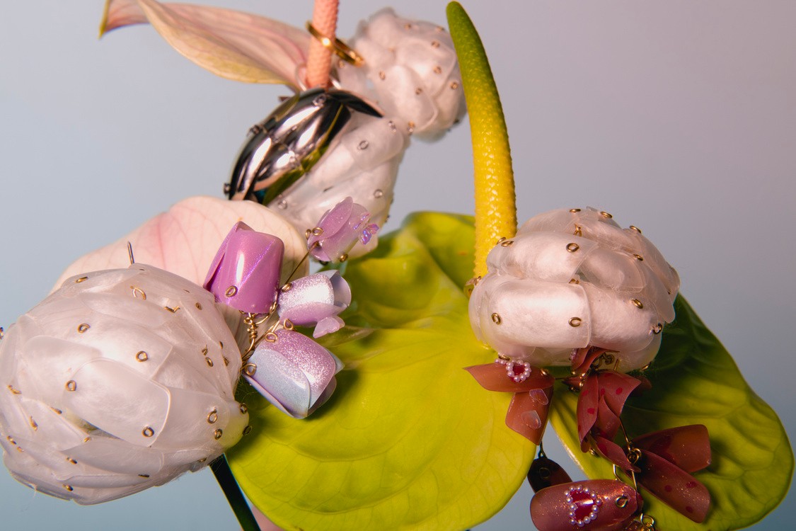 Contemporary jewellery materials are diverse. In a recent project, I experimented with using nail film in jewellery. Originally designed to attract male attention, nail art is often seen as a necessary adornment for public appearances. I view social anxiety as a protective shell, akin to a cocoon. Within each cocoon, one can create their own unique beauty without fear of judgement. I attempted to create a clean and soft cocoon shape using nail materials, utilising contrasting colours and textures to express each individual’s unique personality and potential. My aim is to inspire those who are hesitant to express themselves in social situations.