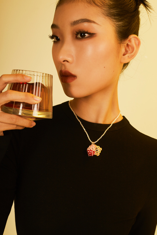 One of my hobbies is tasting and mixing cocktails. During drinking and mixing, the liquid is often in an unstable state. Appreciating the sight of the transparent liquid flowing is another enjoyment mixing cocktails brings me, aside from the delicious taste. As a jewellery designer, I capture the moment when the liquid splashes and design it into jewellery stands and matching accessories. The outcome of the 'Elixir Cascade' project includes four sets of jewellery stands and accessories inspired by different cocktail glasses and cocktails. The stands are made through modelling and 3D printing, with earrings, necklaces, and pendants made of bead strings hanging on them. The bead strings and pendants simulate the splashing liquid and the decorative elements on cocktails. The pendants sway when the stands are moved, appearing lively and light.